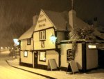 | Running Horse, Bridge Street, Leatherhead as evening snow falls...