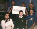| Winners, Jackie presenters John Noble and Steve Mowbray and St Nicholas Centre staff at a giveaway of £107-80 cheques